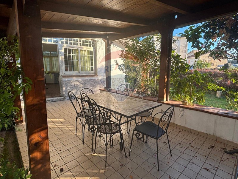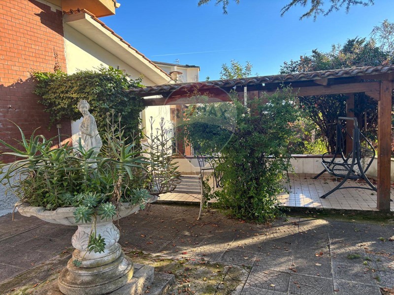 Spazi esterni: Un giardino privato di 1600 mq circonda la villa, arricchito da due eleganti porticati, ideali per momenti di relax o cene allaperto.