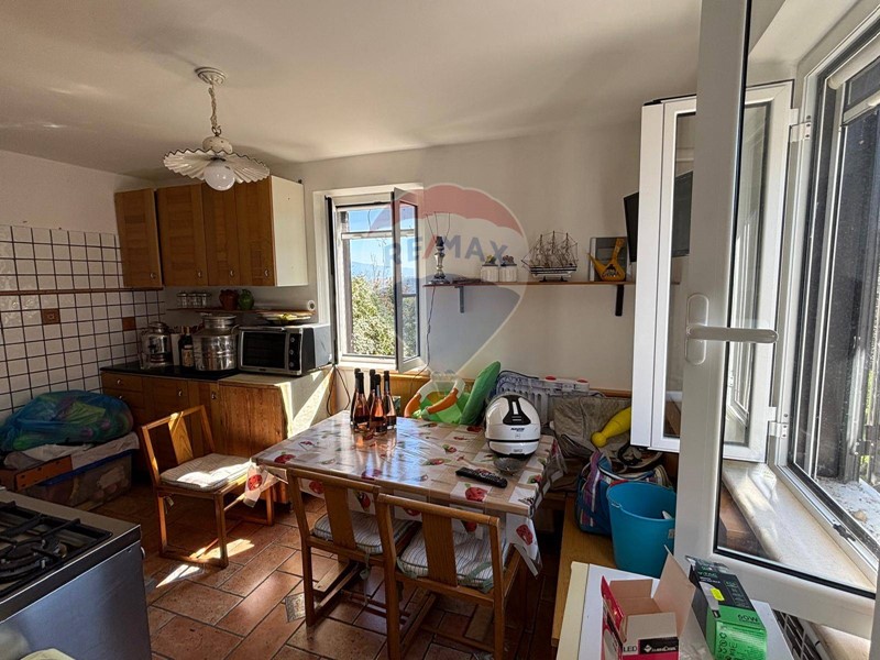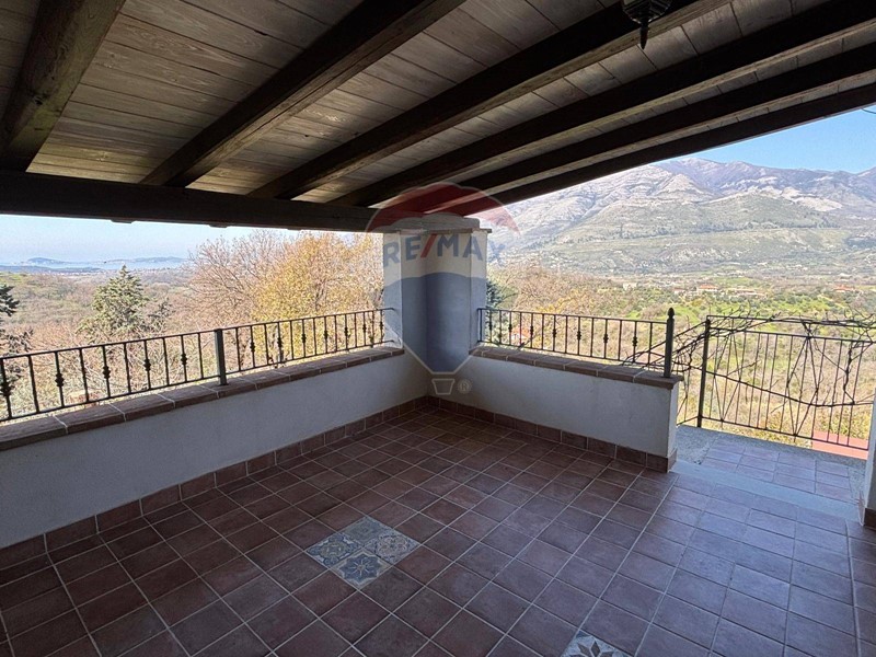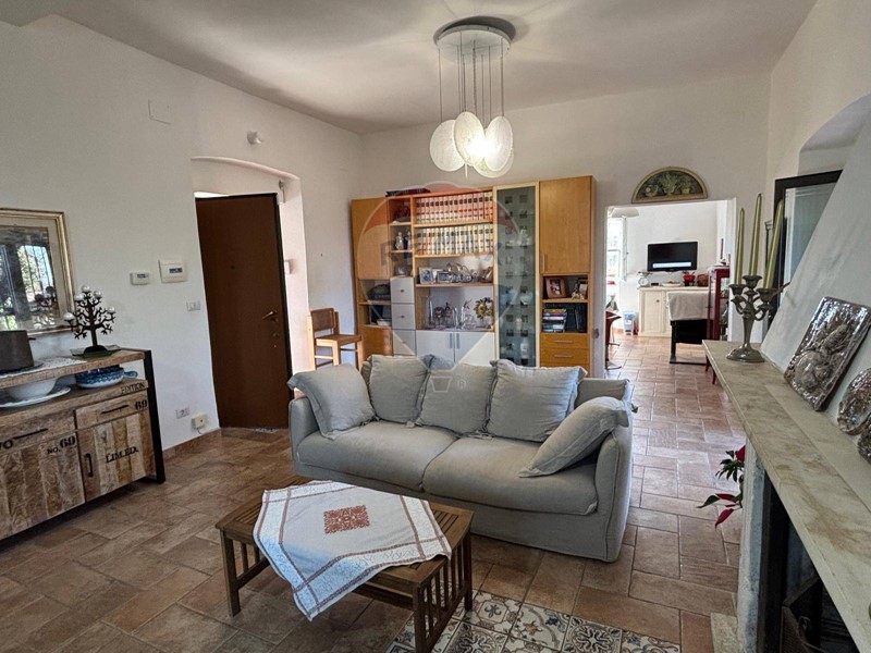 La proprietà è accessibile da due ingressi indipendenti ed è circondata da ben 6.400 mq di terreno coltivato in parte ad uliveto (oltre 60 piante), con una suggestiva vista che spazia dalle montagne fino al mare.