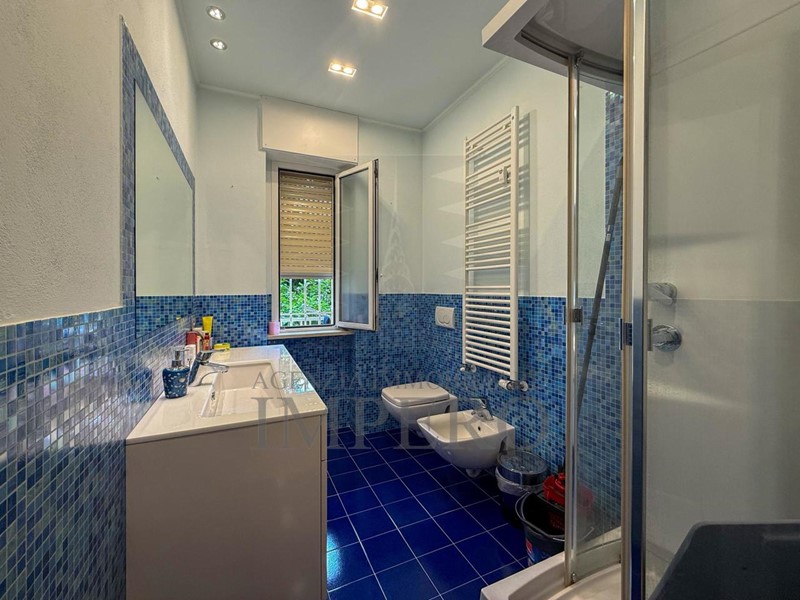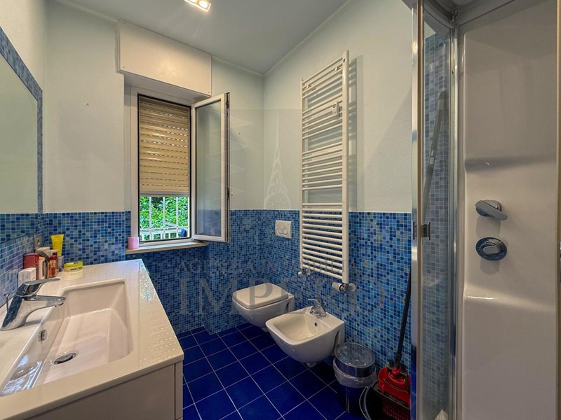 Rif. 23413. Il Gruppo Immobiliare Agenzia Impero propone in vendita a Bordighera, in zona centrale e ben servita, a pochi passi dalla Costa Azzurra, un funzionale appartamento di quattro vani, ubicato al piano rialzato di una palazzina di cinque piani servita da ascensore. L’immobile si apre su un ingresso con disimpegno che conduce all’ampio soggiorno con cucina a vista, caratterizzato dall’accesso diretto al balcone affacciato sul giardino privato, ideale per momenti di relax all’aperto. La zona notte comprende una camera singola, una camera matrimoniale con bagno privato en suite, cabina armadio e un secondo bagno. Completa la proprietà un pratico ripostiglio. La soluzione è completata da una cantina di pertinenza e un posto auto condominiale. Il riscaldamento è centralizzato, garantendo spese contenute e un ambiente confortevole tutto l’anno. L’appartamento è inoltre dotato di impianto d’allarme e inferriate alle finestre, per assicurare sicurezza e tranquillità. Questa proposta immobiliare rappresenta un’opportunità ideale per chi desidera vivere in una posizione strategica, con tutti i servizi a portata di mano e a breve distanza dal mare.