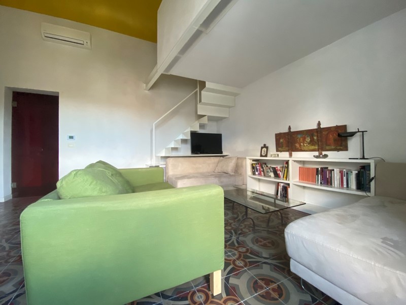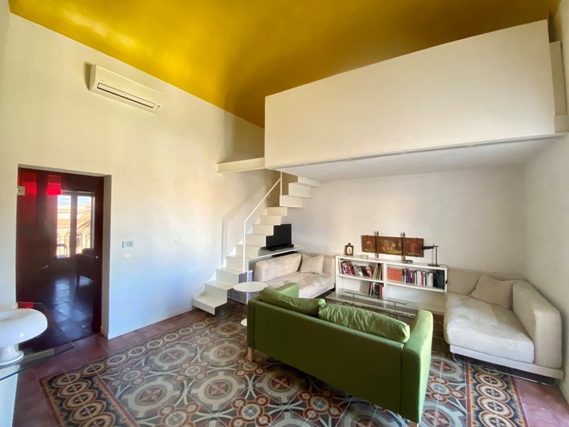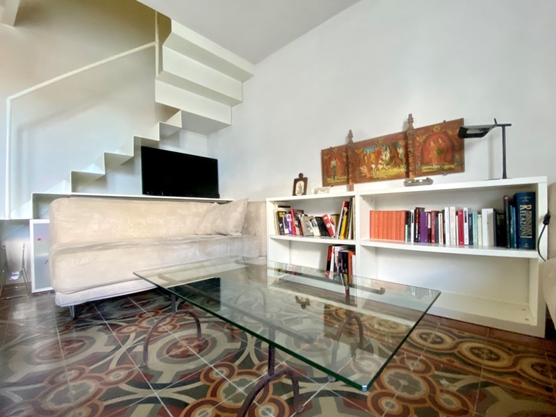 L’ingresso apre su una cucina su misura con pavimento in parquet, collegata a un soggiorno con soffitto a volta e balcone con vista sul Tempio. Sopra il soggiorno si trova un soppalco con una camera da letto.
