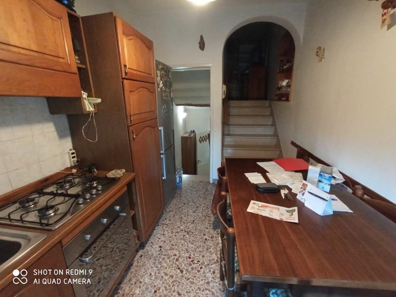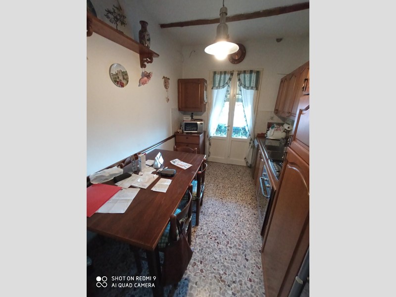 Piccolo terratetto disposto su quattro livelli, da ammodernare, così composto: al piano terra si accede in un ampio ingresso con un piccolo ripostiglio ed una ampia cantina; al piano primo troviamo la cucina abitabile con un piccolo balcone ed il bagno; al piano secondo il soggiorno; al piano terzo troviamo le due camere ed un piccolo sottotetto; la proprietà è completata da un garage con due ripostigli ed un piccolo resede il tutto posto a poca distanza dall' immobile principale.
