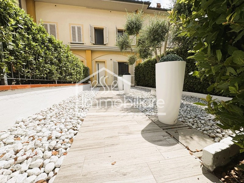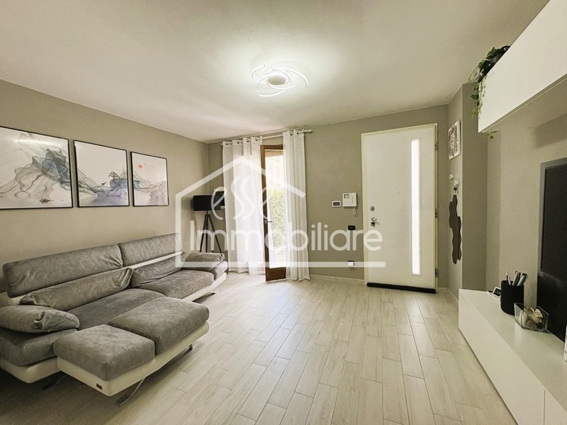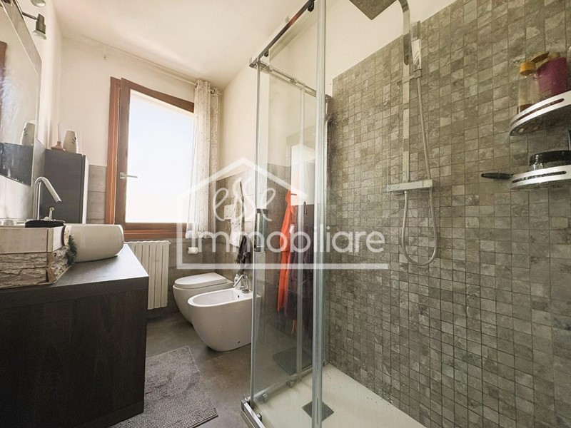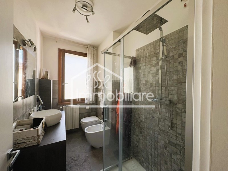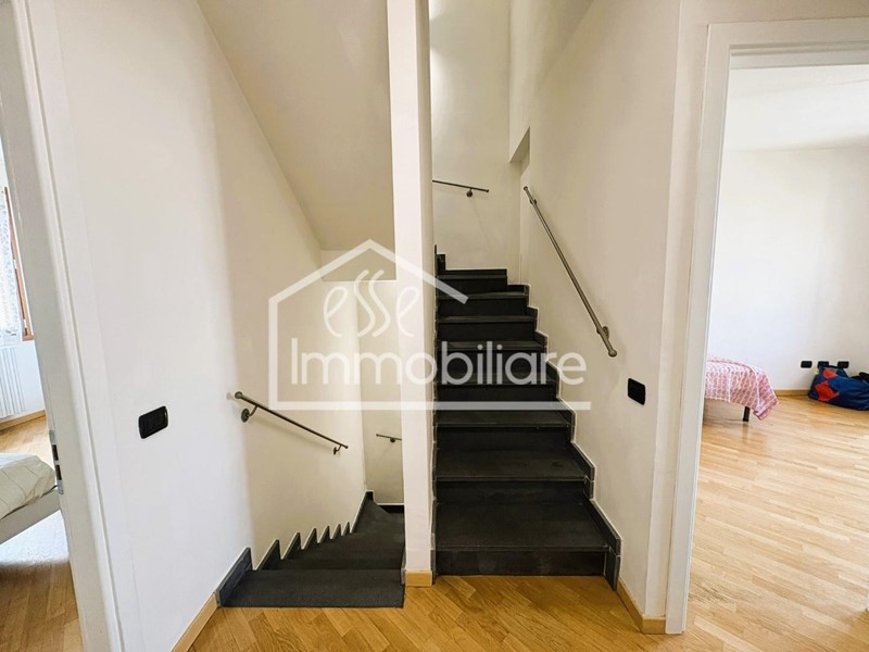 Dal giardino esclusivo si accede all'abitazione composta da soggiorno, cucina abitabile con accesso al resede mattonellato di 25 mq, antibagno e servizio igienico con box doccia e finestra; al primo piano un'ampia camera matrimoniale con doppia finestra, cameretta e altro servizio igienico con box doccia e finestra; al piano superiore mansarda praticabile dove poter realizzare un'altra camera e con predisposizione per un terzo bagno.
