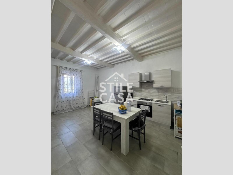 L’immobile è dotato di riscaldamento autonomo a metano con radiatori in alluminio, mentre gli infissi in legno mantengono il fascino rustico tipico delle abitazioni toscane.