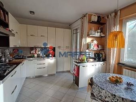 Sempre dal salone si raggiunge la grande cucina abitabile che ha accesso al giardino molto curato.