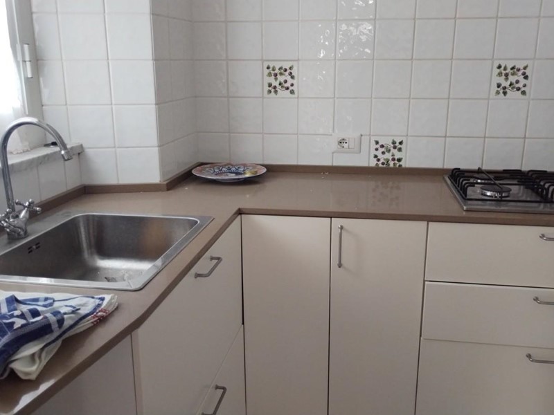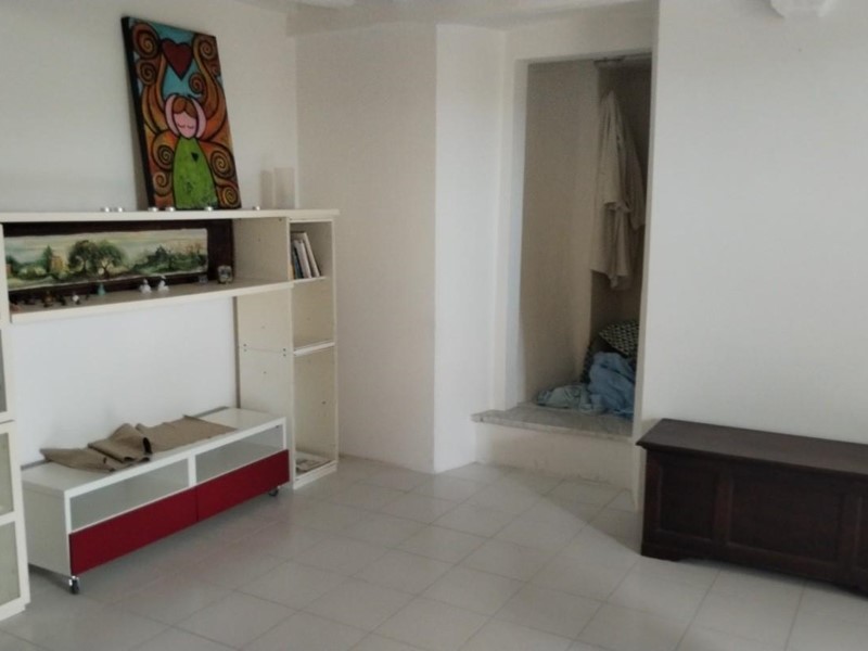 Rif. B 47 In zona arieggiata e molto soleggiata in piccolo terratetto, grazioso monolocale di circa 35 mq, ristrutturato e ben rifinito, con in ingresso in grande vano di 25 mq che unisce zona giorno con zona notte ( tramite divano letto matrimoniale) bagno con doccia, cucinotto attrezzato e nicchia uso ripostiglio.