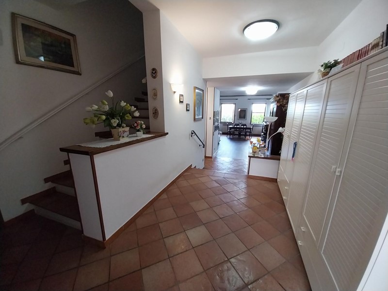 CALCI - In buonissime condizioni, zona riservata e silenziosa, VILLETTA di complessivi circa 250 mq sviluppata su piani sfalsati, composta al piano terra da ampio ingresso, soggiorno doppio con camino, sala pranzo, cucinotto, bagno, studio o camera e garage comunicante con l'abitazione, al piano primo ingresso, studio a vista sul soggiorno, tre camere, doppi servizi, loggia ed ampia terrazza, al piano mansardato, 3 vani e balcone, oltre cantina e giardino di circa 300 mq. Ottima soluzione genitori/figli, gia' esistente la seconda cucina. Classe G. Riferimento CA0027VI trattabile