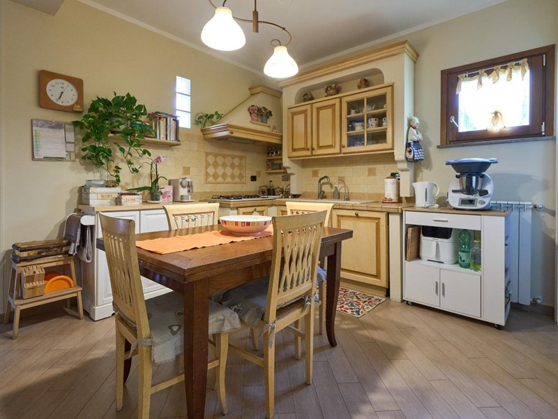 Piano Terra: ingresso indipendente su ampia zona giorno con cucina soggiorno in affaccio diretto su un curato giardino privato e su un piacevole loggiato, ideale per pranzi all’aperto e momenti di relax.