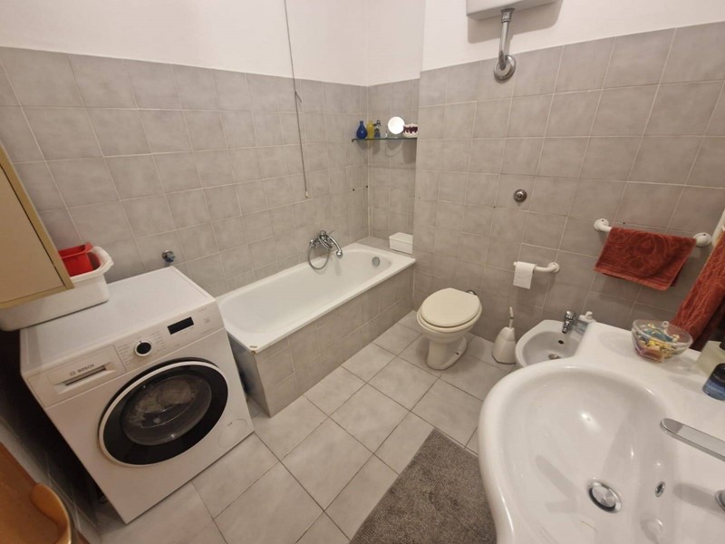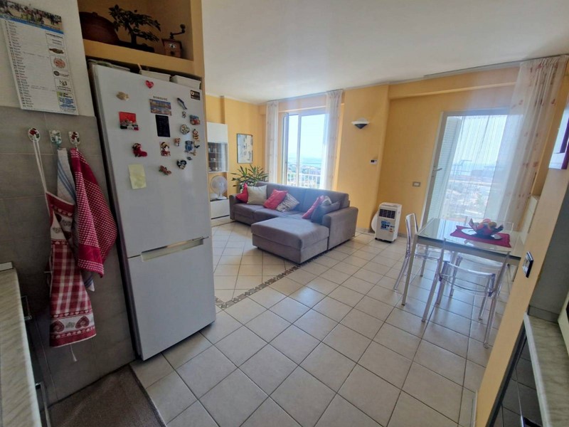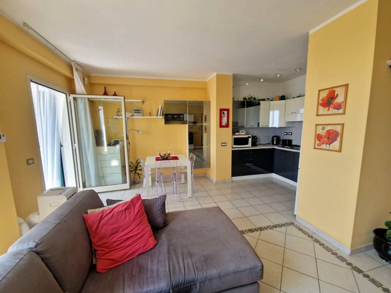 L'appartamento si estende su una superficie totale di 80 metri quadri circa e si compone di un ingresso in ampio soggiorno con angolo cottura a vista, camera matrimoniale, camera singola, due bagni di cui uno con box doccia e l'altro con vasca da bagno.