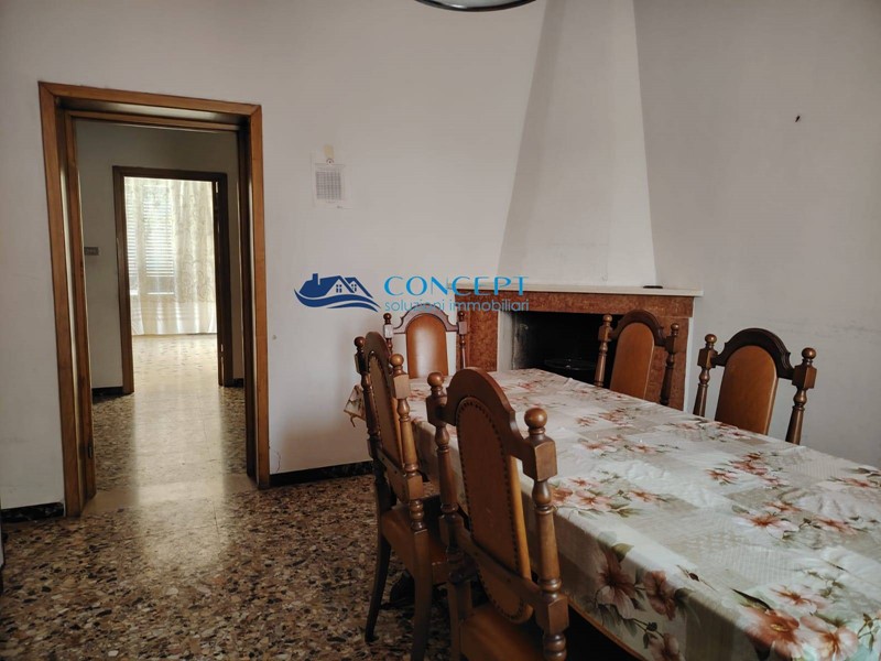 Al primo piano è sito un appartamento di 150 mq con soggiorno, cucinotto, tre stanze da letto, un bagno ed un ampio terrazzo.