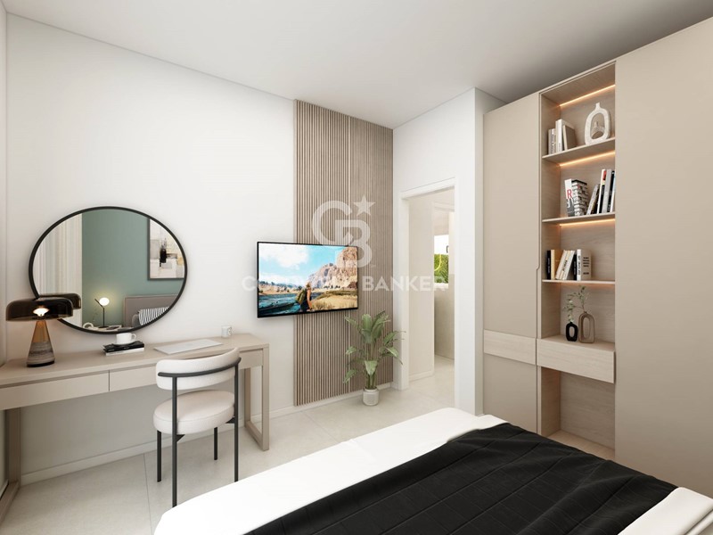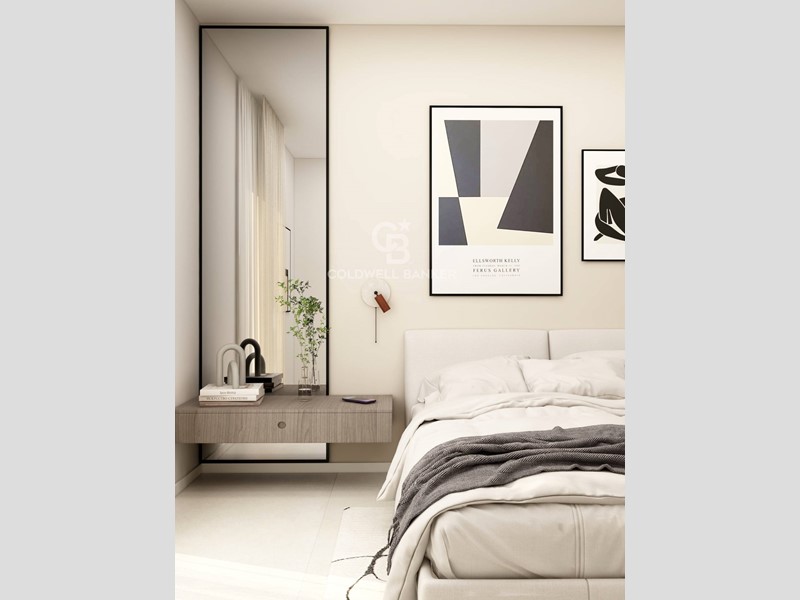 Lappartamento è dotato di un ampio soggiorno con cucina a vista, una camera matrimoniale, una seconda camera doppia, bagno finestrato con box doccia e bagno di servizio con lavanderia.