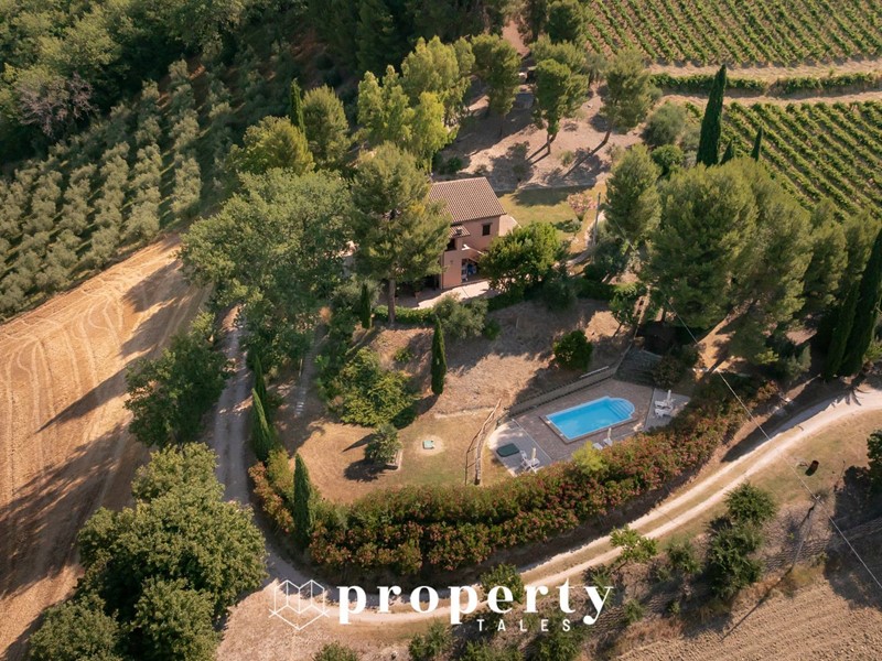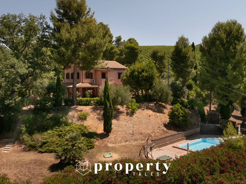 Lagenzia Property Tales propone in vendita una villa con piscina, giardino e bosco privato a pochi minuti dal mare a Cossignano, in provincia di Ascoli Piceno, nelle Marche.