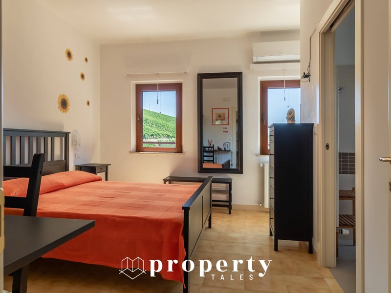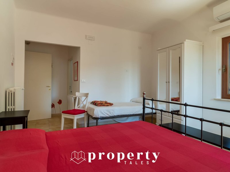 La villa si sviluppa su due livelli per un totale di circa 233 mq commerciali. Il piano terra ospita un ampio soggiorno con camino, una grande cucina abitabile con affaccio diretto sul portico, una camera matrimoniale, un bagno e un locale tecnico con accesso indipendente. Due spaziosi portici, uno esposto a Est e uno nella zona Sud-Ovest, offrono ambienti ideali per pranzi allaperto o momenti di relax in ogni stagione.