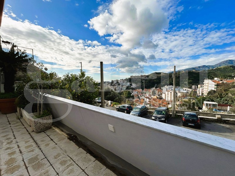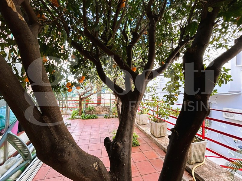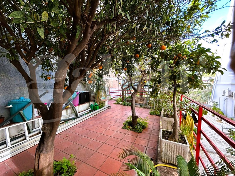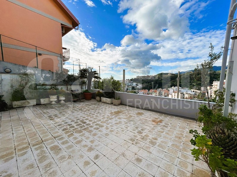 L'appartamento è posto al primo piano e gode di un'aperta esposizione panoramica sulla città e sul mare. Internamente la disposizione è pratica ed accogliente, tutti gli ambienti sono spaziosi e ben illuminati ed il grande terrazzo a livello è sicuramente il valore aggiunto dell'abitazione. Il salone è grande ed è dotato di apertura sul balcone, le camere da letto sono due, il bagno è finestrato e con vasca, il ripostiglio è pratico, la cucina è abitabile e con uscita sul terrazzo. Quest'ultimo ha una metratura di circa 110 mq, adornato con numerose piante e alberi da frutto; ideale per chi è alla ricerca di uno spazio esterno ampio da vivere quotidianamente con bambini ed amici a quattro zampe, per chi ama dedicarsi alla cura di fiori e piante, per chi desidera una grande area da condividere con famiglia ed amici.