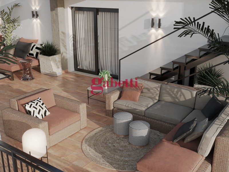 Dove il comfort incontra l'eleganza: vivere in villa non è mai stato così emozionante In una splendida villa bifamiliare completamente ristrutturata, questo raffinato appartamento al secondo piano è una vera oasi di charme e tranquillità, pensata per chi desidera abitare in uno spazio esclusivo senza rinunciare alla comodità e alla bellezza. Dal livello strada si accede a un resede riservato che accoglie un curato giardino e una piscina, entrambi in condivisione, perfetti per rilassarsi nelle giornate di sole e vivere momenti conviviali in un contesto verde e silenzioso. Varcata la soglia d'ingresso, si apre un ampio disimpegno che anticipa gli ambienti della zona notte: due spaziose camere matrimoniali, un elegante bagno finestrato e una comoda cabina armadio a servizio di una delle camere. Tutti gli spazi sono stati progettati per offrire massimo comfort, luce naturale e una sensazione di quiete diffusa. Una scala accompagna verso la zona giorno, il vero cuore pulsante della casa: un cucinotto funzionale e una grande zona living dove soggiorno e sala da pranzo si fondono armoniosamente, creando un ambiente ideale per vivere e accogliere. Da qui si accede a una magnifica terrazza panoramica, libera su tre lati, dove la vista si apre senza ostacoli e l'esposizione perfetta regala luce dall'alba al tramonto. Qui privacy e bellezza si fondono, offrendo uno spazio all'aperto raro e prezioso, con un secondo bagno a servizio del piano oltre alla terza camera. Salendo ancora, si raggiunge il lastrico solare, predisposto per l'installazione di una piscina idromassaggio: il sogno di una spa privata sotto le stelle, finalmente a portata di mano. La ristrutturazione, curata nei minimi dettagli, ha previsto materiali di alto pregio: parquet in tutta la casa, bagni impreziositi da eleganti rivestimenti in travertino, finiture sobrie ma di grande impatto. Questa casa è molto più di una semplice abitazione: è un invito a vivere ogni giorno con stile, in un ambiente accogliente, esclusivo e immerso nella luce.