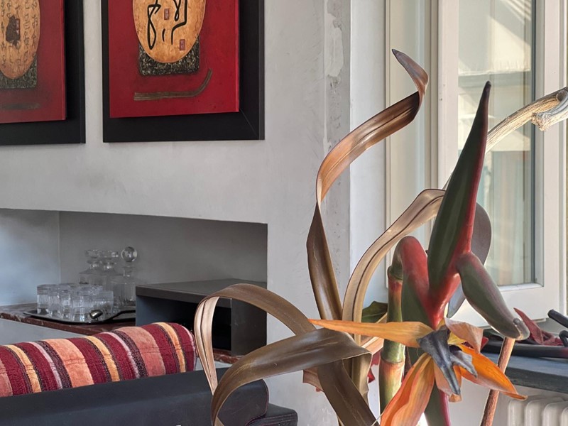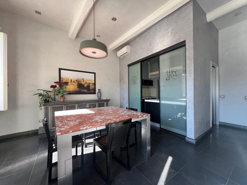 LE FINITURE DI ALTO LIVELLO VEDONO AUTENTICI PEZZI UNICI COME LE PORTE INTERNE DECORATE E RIADATTATE IN QUESTA SOFISTICATA RISTRUTTURAZIONE, INSERTI IN MARMO ROSSO IMPERIALE IN PENDANT CON ALCUNI PEZZI DI ARREDO UNICI COME IL TAVOLO DA PRANZO, MANIGLIE LAVORATE, ARMADI FABBRICATI ARIGIANALMENTE PER ESSERE INTERCONNESSI CON GLI SPAZI E LO STILE.