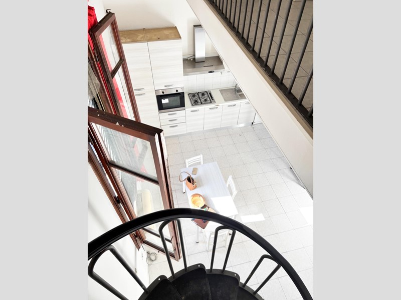 • tramite scala a chiocciola si accede al piano soppalcato, dove sono presenti la camera da letto e il bagno.