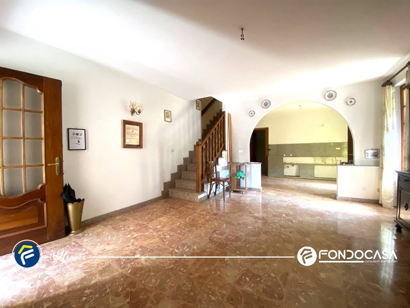 Al piano terra troviamo un grande e luminoso soggiorno impreziosito da un suggestivo camino a legna, perfetto per creare unatmosfera calda e accogliente.