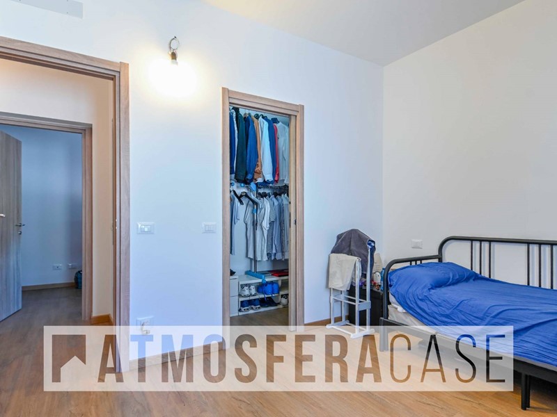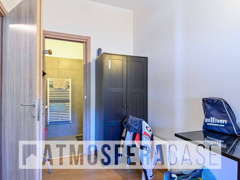 La soluzione internamente è così disposta: disimpegno d'ingresso con comodo ripostiglio/dispensa, zona giorno con cucina a vista, disimpegno zona notte, camera da letto matrimoniale con cabina armadio, bagno padronale finestrato con doccia e seconda camera da letto con bagno privato anch'esso con doccia.