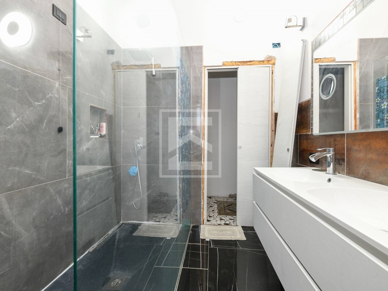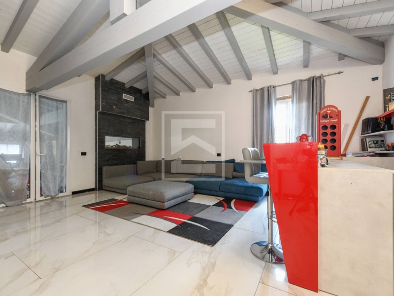 Al piano primo troviamo una seconda zona living completamente ristrutturata con ampie vetrate che regalano molta luce, riscaldamento a pavimento, impianti rifatti e una camera matrimoniale con bagno.