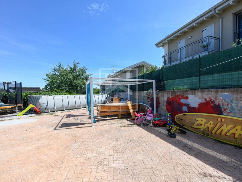 Inserita in via privata che regala privacy, la villa dispone di giardino sui quattro lati con piscina fuori terra.