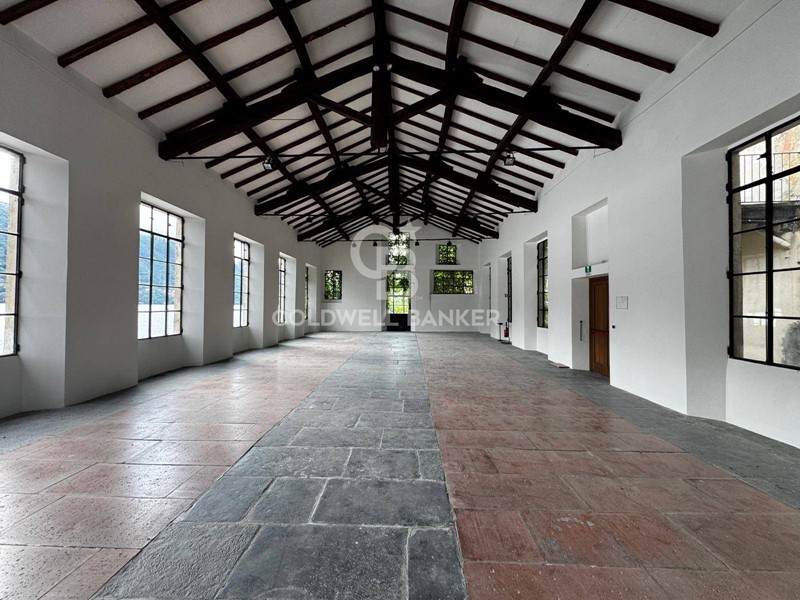 Piano secondo: ospita un imponente salone di circa 200 mq, con soffitti alti tra i sei e i nove metri, ampie finestre panoramiche e unatmosfera che lo rende adatto a eventi privati, esposizioni artistiche o ambienti di rappresentanza. Il salone è collegato alla villa sia internamente sia tramite un giardino a lago.