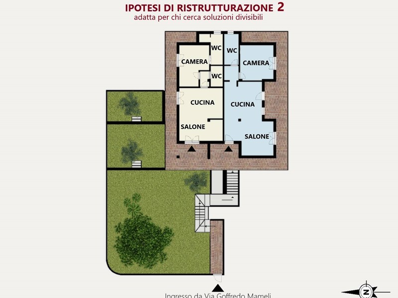 ipotesi 2: divisibile in 2 appartamenti da 70 mq ciascuno