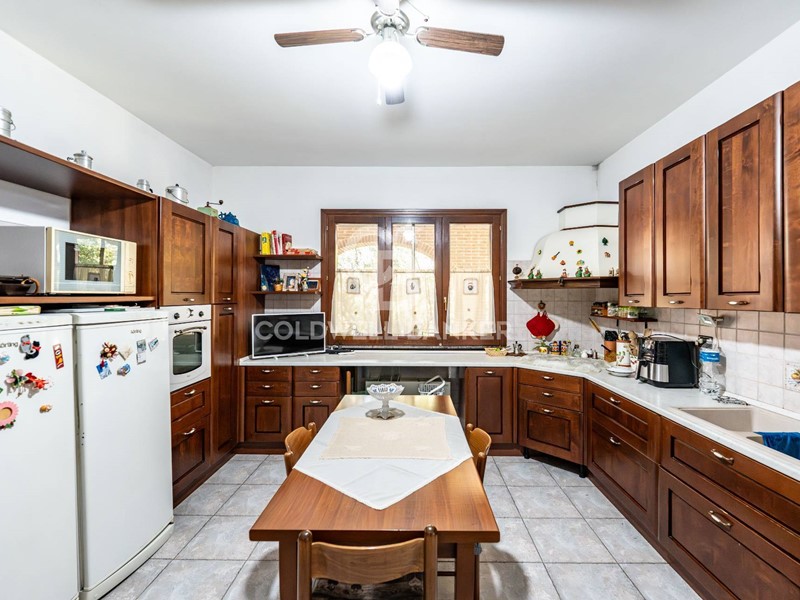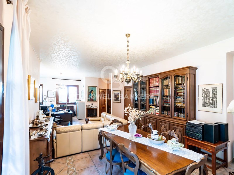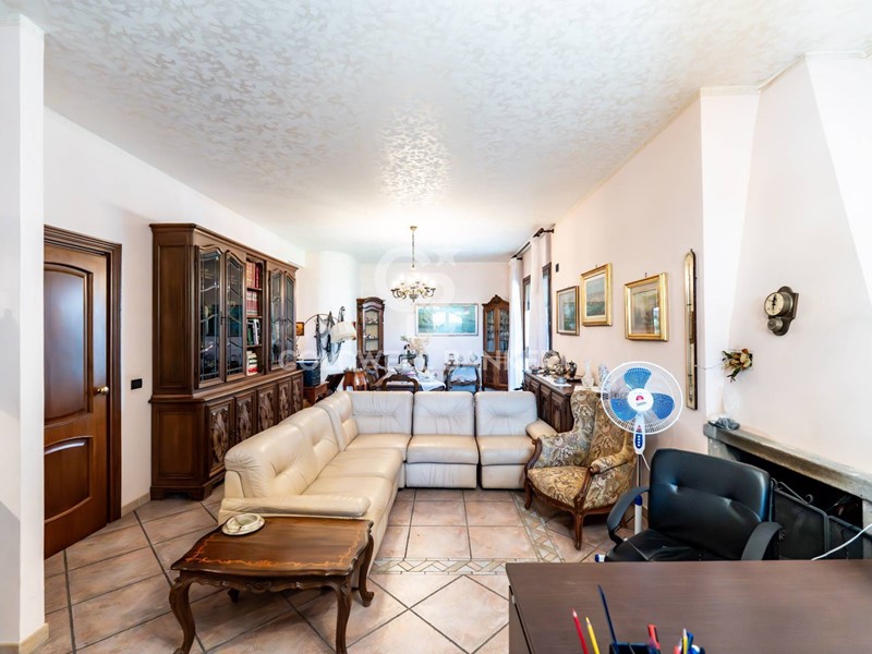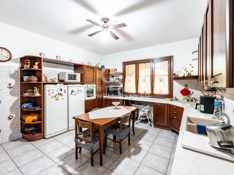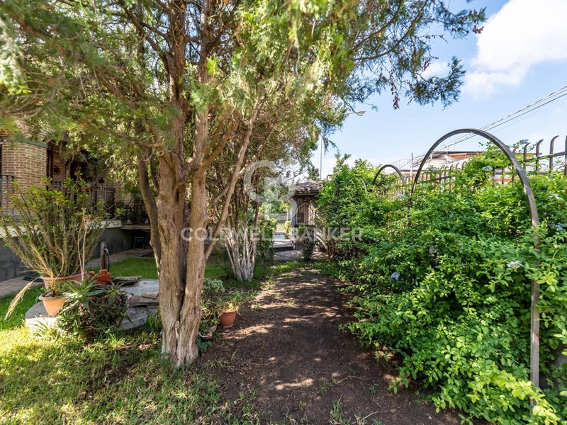 Disposta su tre livelli, la proprietà offre al piano rialzato un ampio soggiorno, cucina abitabile con accesso diretto al giardino, tre camere da letto, bagno e lavanderia. Il portico esterno permette di godere appieno del verde circostante e della quiete. Il piano mansardato include un balcone e un terrazzo, mentre al piano seminterrato si trovano un ampio garage, deposito e una cantina tradizionale. La villa dispone di scala interna, impianti automatizzati e perfettamente funzionanti, pozzo privato, allaccio alla rete fognaria comunale e gas di città. Infissi in vetrocamera garantiscono comfort termico e acustico. Il giardino, ben curato, è in parte ornamentale e in parte destinato alla coltivazione di frutta e ortaggi, dotato di impianto di irrigazione automatizzato.