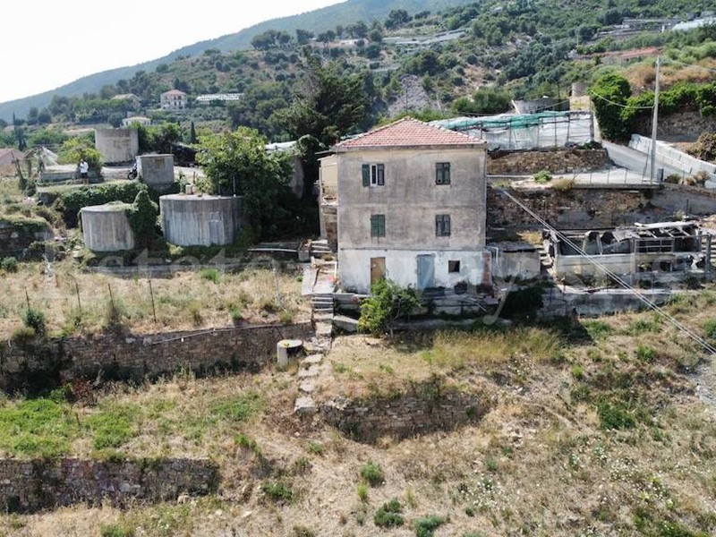 Rustico con vista mare in vendita a Ospedaletti 222 mq da ricostruire con ampliamento del 30% e terreno di 3.000 mq