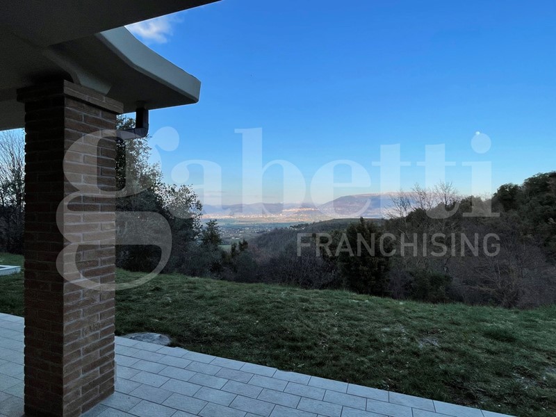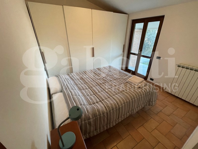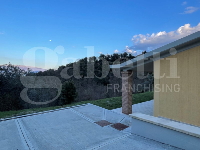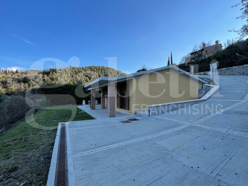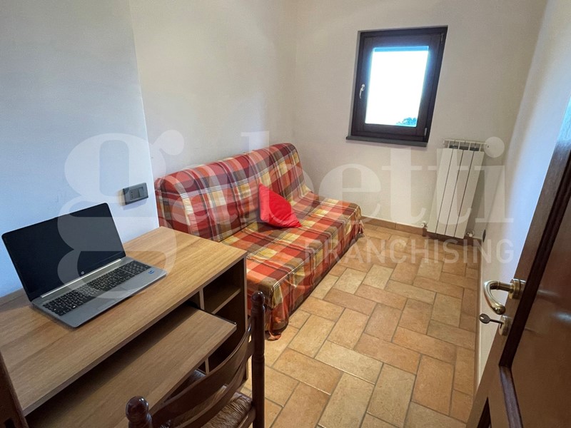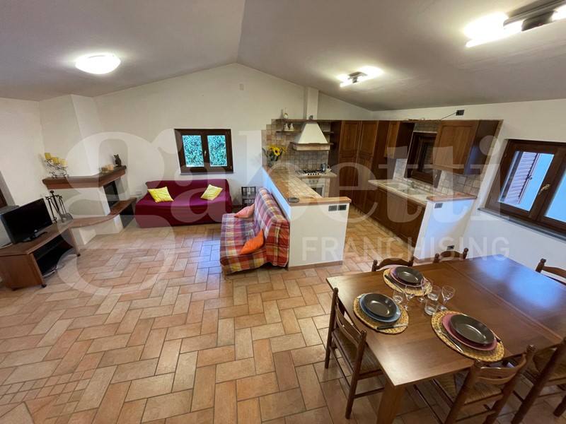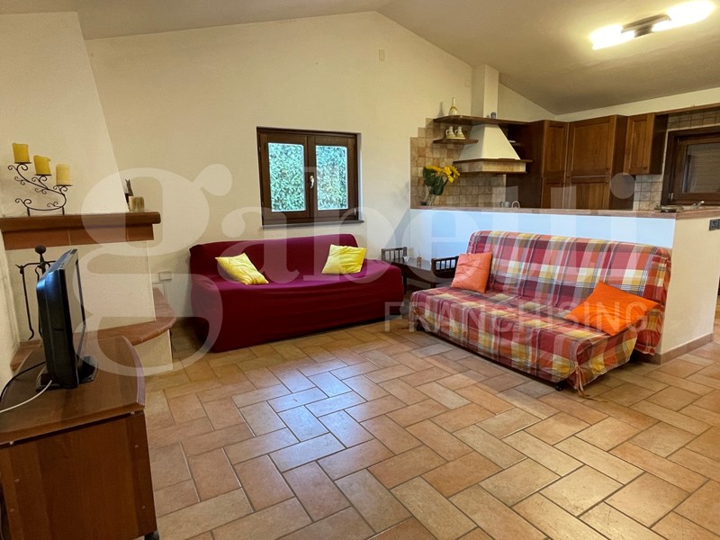 Bettona-loc. Cinque Cerri: In zona verde e panoramica disponiamo di soluzione indipendente disposta su unico livello e composta da portico di 20 mq, soggiorno con angolo cottura, due camere da letto, uno studio ed un bagno con finestra.