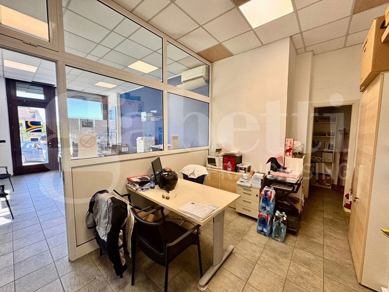Proponiamo locale commerciale con due vetrine su strada provinciale di c.a 50 mq. con retro e servizio. Al piano cortile posto auto di proprietà.