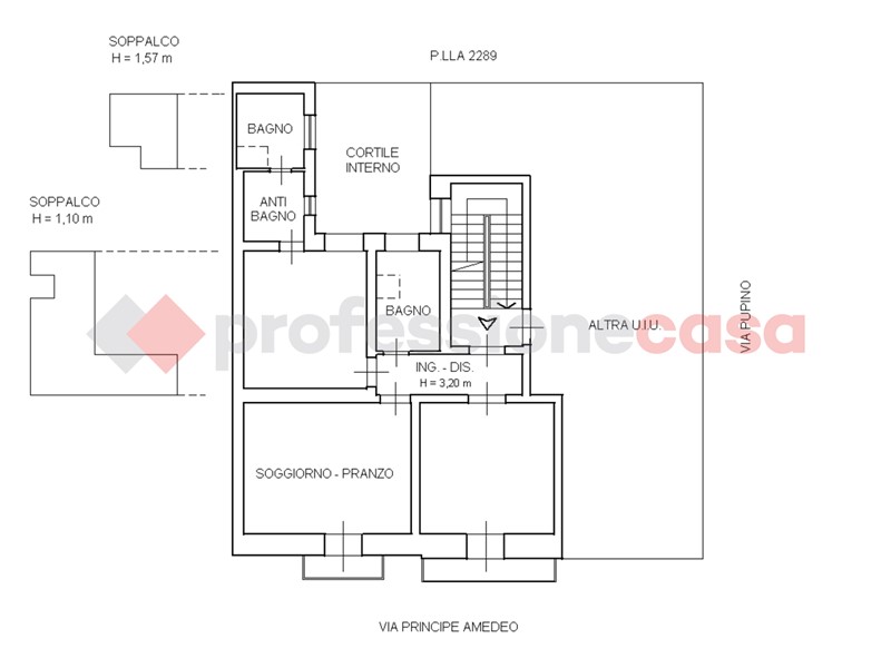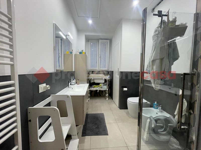 La zona giorno è composta da una cucina e soggiorno in ambiente unico, luminoso grazie al balcone con affaccio su via Principe Amedeo. La zona notte comprende una cameretta con balcone, una camera matrimoniale con comodo antibagno e bagno di servizio, oltre a un ulteriore bagno principale completo di box doccia.