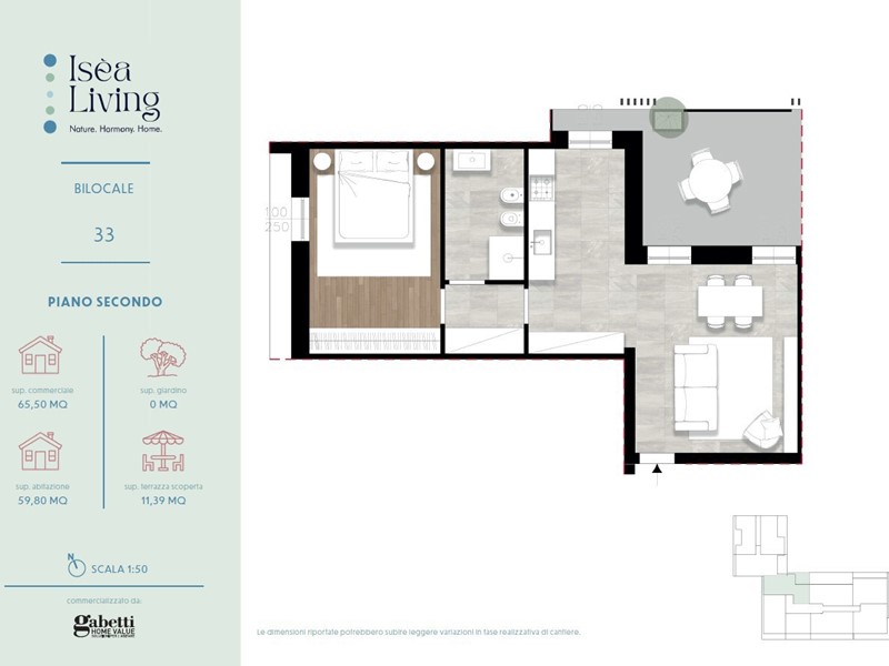 BILOCALE AL PIANO SECONDO CON VISTA LAGO E SOGGIORNO CON COTTURA SEPARATI- ingresso su soggiorno con cucina separata ed accesso al terrazzo vivibile, disimpegno, bagno e camera matrimoniale.