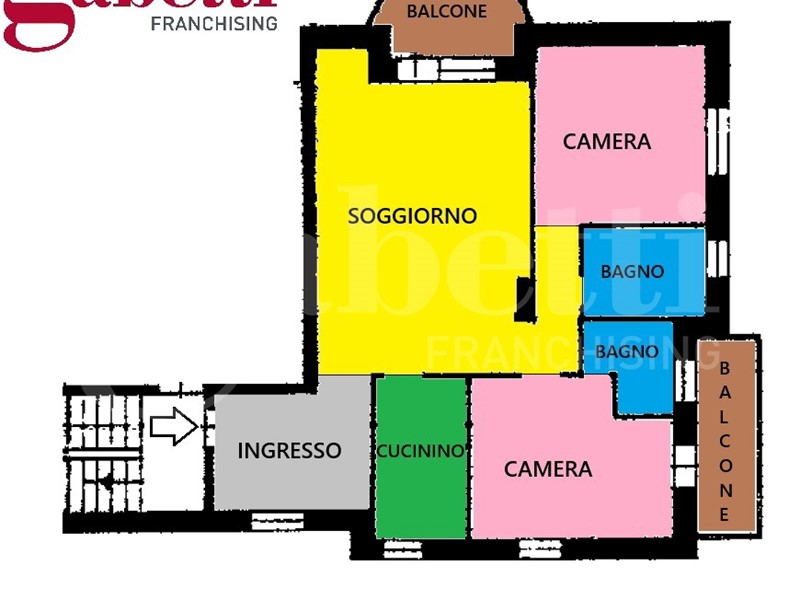 ampio e luminoso trilocale con doppi servizi così composto: spaziosa zona ingresso/disimpegno, ampio soggiorno con acceso al primo balcone, cucinino separato con finestra, una camera da letto con bagno in camera finestrato, servizio principale con finestra e seconda camera da letto matrimoniale, secondo balcone lato pista con vista panoramica sul monte Chaberton.