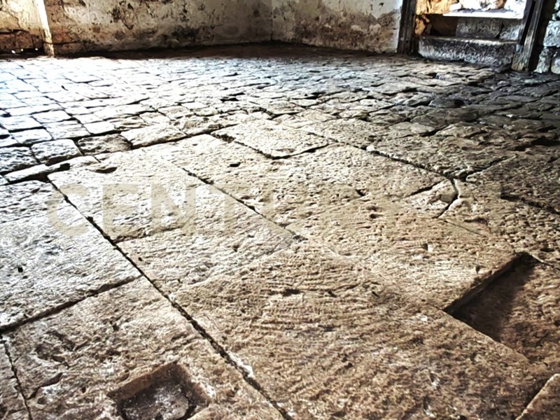 Una stanza presenta scaffalature a muro, probabilmente utilizzate per riporre oggetti o per esporre oggetti. Un'altra stanza presenta un elemento circolare distintivo, forse un tradizionale forno per il pane o un contenitore per la conservazione, che contribuisce all'atmosfera autentica della proprietà.