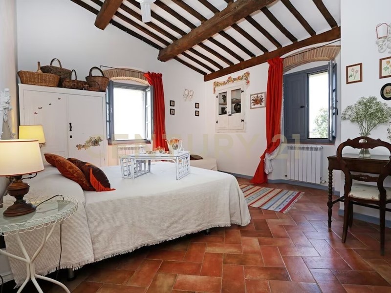 La piscina interrata mt 12 x6 x1,40 si apre sullo splendido panorama della campagna. La proprietà di 17 ettari include vigna , oliveto ,alberi da frutta ,tutto biologico. La proprietà offre la possibilità di passeggiare nell’ ampia terre di proprietà parzialmente recintata.