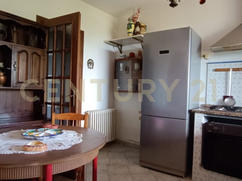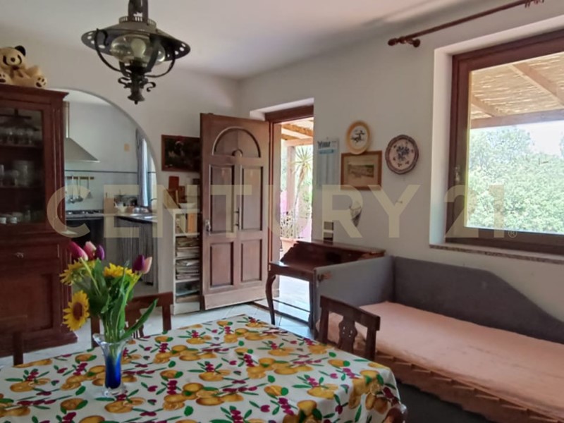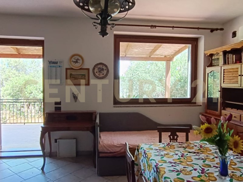 Un’ampia veranda d’ingresso con vista mare permette di accedere all’ampio soggiorno, luminoso e con vista, un termocamino ed una cucina in muratura con rispostiglio, rendono l’ambiente vivibile sin da subito in ogni stagione.