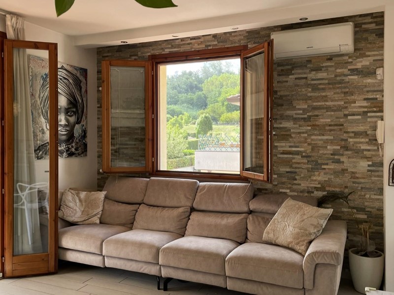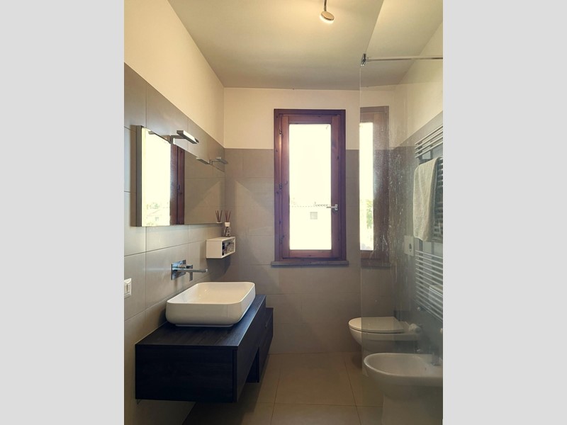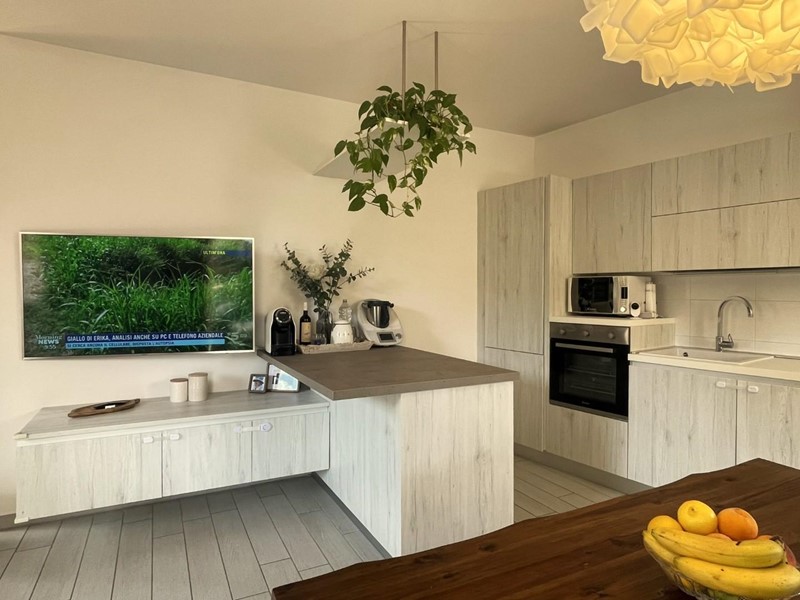 Costruito con attenzione all'efficienza energetica, l'appartamento è dotato di cappotto termico, riscaldamento a pavimento, aria condizionata e predisposizione per pannelli solari. Ulteriori comfort includono un sistema di aspirazione centralizzata, un addolcitore dell'acqua, un sistema d'allarme e infissi con zanzariere. La vendita include anche la cucina completa di elettrodomestici, penisola e il mobile del soggiorno, rendendo l'appartamento pronto per essere abitato fin da subito.