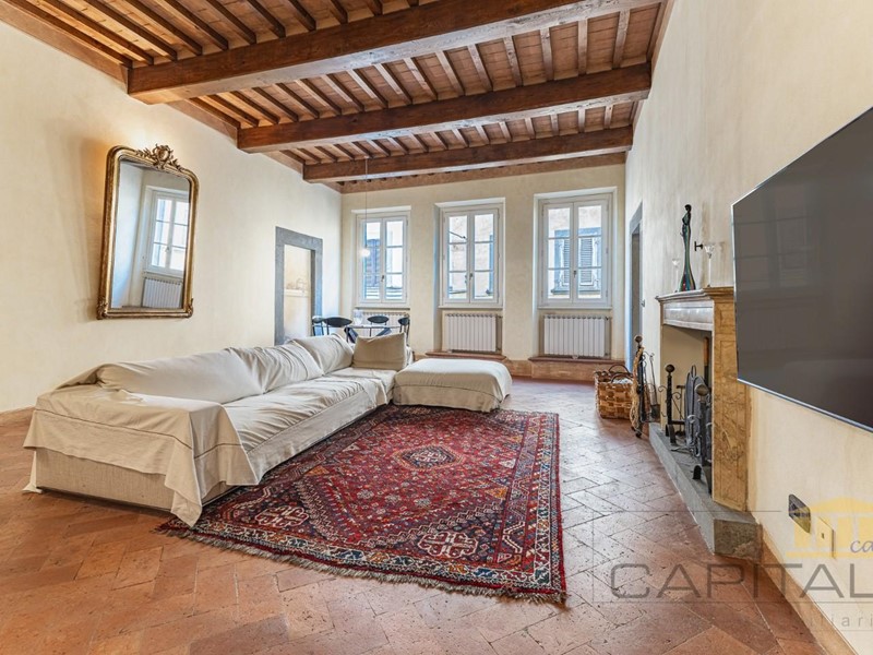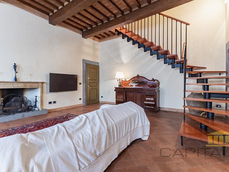 MONTOPOLI VAL' ARNO- VENDESI ESCLUSIVA Residenza storica sita in un palazzo d'epoca di alto pregio. La proprietà, risalente all'epoca medioevale intorno al mille d.C., è stata parte della residenza estiva dell'allora Vescovo di Lucca, di cui l'immobile ne porta ancora diverse caratteristiche peculiari, come i portali in pietra, i camini originali, uno in particolare in marmo rosa, i soffitti in legno e mezzane in cotto ed i caratteristici pavimenti originali in cotto fiorentino. Disposto su due livelli interni e avente ingresso principale dal pianerottolo del piano secondo, questa splendida proprietà viene proposta in vendita con tutti gli arredi che la compongono, nello specifico trattasi di mobili di pregio di epoca storica e perfettamente restaurati, e da altri con design moderni che si fondono entrambi nel contesto della struttura storica dell'immobile. Le misure interne molto generose, circa 280 mq. e sono così distribuite: Un grande e luminoso salone all' ingresso (circa 70/80 mq. ) e illuminato da tre ampie finestrature, nel quale è posizionato il particolare camino antico in marmo rosa e una scala in legno per l'accesso al piano superiore, una bellissima cucina abitabile con doppia finestratura, che fa da cornice ai portali in pietra distribuiti in serie tra il salone, la cucina, ed il disimpegno, un locale disimpegno- armadi che fa da antibagno ad un gradevole bagno di servizio a servizio del piano e altra scala in legno originale che porta al piano superiore; Il piano superiore, caratterizzato da tre grandi ed ampie camere, di cui una di passo ma con la possibilità di renderla indipendente, un bagno principale in marmo, caratterizzato da due lavabi in pietra e una vasca idromassaggio, ulteriore bagno di servizio privato con accesso dalla camera padronale, un locale di servizio ad uso tecnico con la caldaia degli impianti ed un altro grande salone living, della stessa metratura di quello al piano inferiore, ma con un gradevole soppalco a vista in legno, il quale da accesso ad una piacevolissima terrazza abitabile a tasca con vista sui tetti del paese. Completa la proprietà proposta in vendita, una grandissima cantina posta al piano seminterrato del palazzo ed una piccola resede esterna ad uso di giardino posta sul retro del fabbricato. L'immobile si presenta in condizioni perfette, in quanto è stato sempre mantenuto dall'attuale proprietà pur non abitandolo stabilmente. Gli infissi interni ed esterni sono in legno con vetro termico, i pavimenti sono in cotto fiorentino originale, i soffitti sono in travi in legno e mezzane sabbiati, gli impianti termici sono serviti da caldaia autonoma e dotato di impianto di climatizzazione. Qualche cenno storico del borgo antico del paese, arricchito di chiese e opere d’arte e di un conservatorio (di Santa Marta), ancora esistente, è stato dominio dei Fiorentini intorno al 1300 d.C. per il quale furono edificate fortificazioni con torri e mura (di queste esiste ancora oggi la Torre di S. Matteo) ed un rivellino a protezione della Rocca. La posizione unica dell'immobile, collocato al centro delle maggiori città d'arte, Firenze (50 Km), Pisa (30 Km), Lucca (30 Km), Siena (75 Km) e dai Borghi Storici più famosi della Toscana, San Gimignano (42 Km) e Volterra (43 Km), rende questo immobile molto interessante anche a scopo turistico, e/o semplicemente per vivere momenti indimenticabili nel cuore della Toscana, regione ricercata da tutto il mondo per le sue bellezze naturali e le città d'arte più storiche che la rappresentano. Insomma, se desiderate vivere o solo venire in vacanza in Toscana e pensate di acquistare un immobile storico e di pregio, anche solo ma mettere a reddito, questo è quello che fa per voi!!! Classe energetica " F " - Disponibilità anche in breve. Si precisa che l'ubicazione indicata nei portali non è quella esatta ai fini della Privacy. Per Informazioni e visite contattare esclusivamente il referente agenzia al numero 335 6493483 Daniele. Richiesta €. 625.000 - Rif. BB600