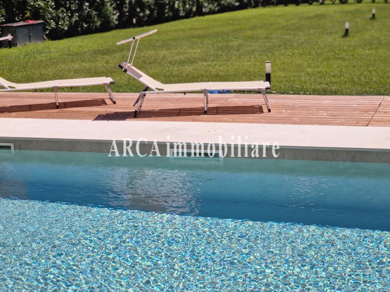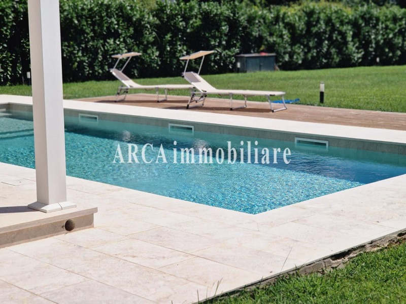 PIETRASANTA, si vende in zona residenziale Villa di Nuova Costruzione disposta su 2 livelli e composta da soggiorno, cucina con affaccio su una grande pompeiana, bagno e camera matrimoniale al piano terra, 3 camere matrimoniali con bagno privato e balconi si trovano al primo piano.