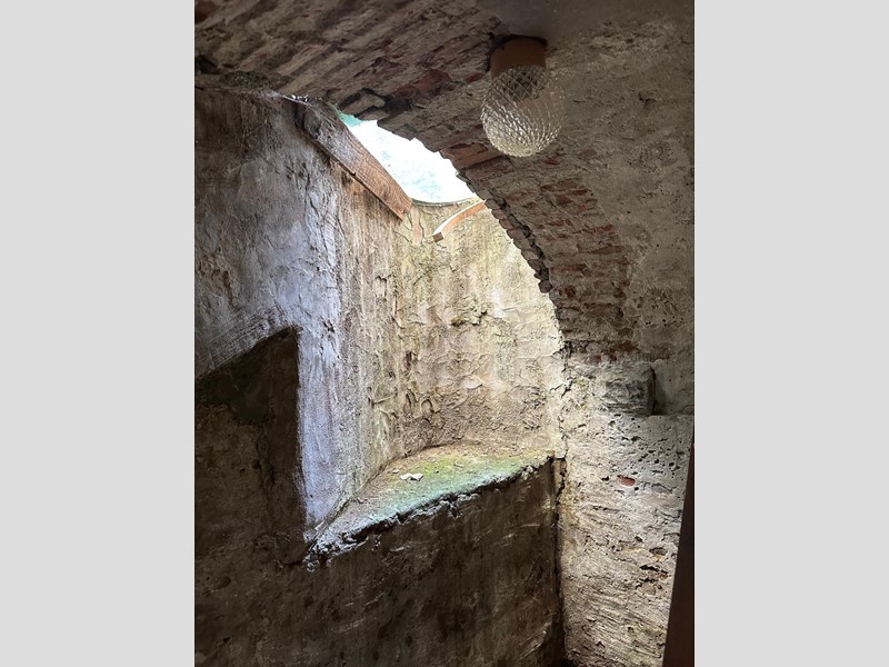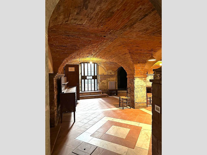 Si compone di un piano terra di 250 mq diviso in 7 ampi vani (di cui due con soppalco) e bagni, e di un piano seminterrato di 280 mq suddiviso in 7 vani, cucina abitabile in muratura, ripostigli e altri bagni, con splendidi soffitti a volte ad arco.