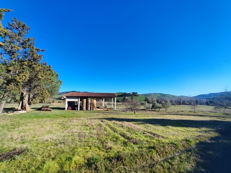 Nella campagna di Volterra, in posizione tranquilla e riservata, proprietà immobiliare composta da casa colonica di mq. 250 circa, garage di mq. 35, box auto di mq. 14, altro fabbricato adibito a locali magazzino di mq.40 con forno, capannone di mq. 255 e fienile di mq. 160. Il tutto circondato da 20 ettari di terreno, in parte pianeggiante e in parte collinare, prevalentemente adibito a seminativo ed in piccola parte a uliveto. Il casolare, posto su due livelli, è composto al piano primo da loggia d'ingresso, soggiorno, tre camere e bagno al piano primo, al piano terra da due magazzini, due cantine, locale tecnico e bagno. E' presente una piscina fuori terra. Possibilità di trasformare parte del piano terra in civile abitazione. Possibilità di acquistare attrezzatura e mezzi agricoli. La proprietà è adatta sia per residenza privata sia per azienda agricola e/o attività di ricettività turistica.