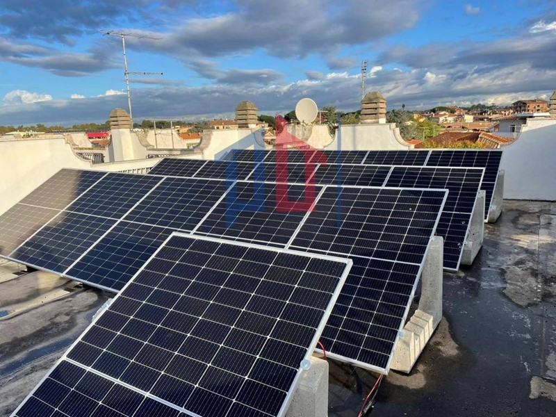 Piano primo : Salone con cucina a vista due camere, un servizio, terrazzo, solarium con pannelli fotovoltaici, impianto di allarme video sorvegliato.