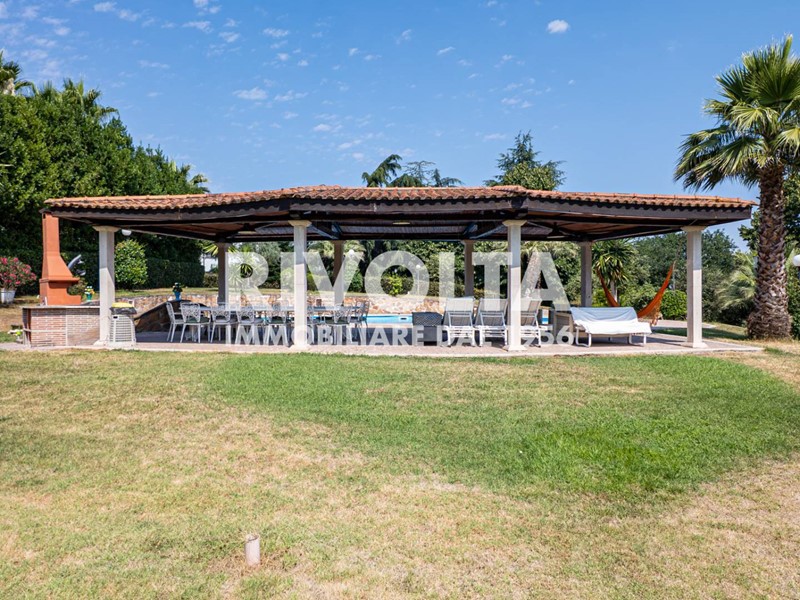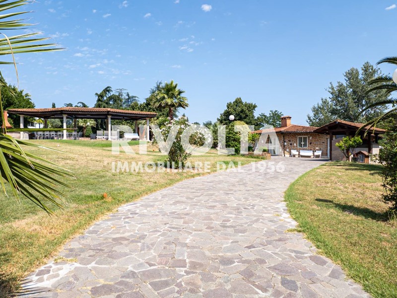 Rivolta vende in esclusiva - Giustiniana, Parco di Veio - Rivolta vende in esclusiva Giustiniana, Parco di Veio Villa esclusiva con piscina. Nel cuore della natura incontaminata del Parco di Veio, proponiamo in vendita una splendida villa bifamiliare di circa 450 mq, immersa in un parco privato di circa 7.000 mq, arricchito da oltre 120 piante tra palme e ulivi. Unoasi di verde e tranquillità che accoglie una magnifica piscina di 10x15 metri, circondata da eleganti zone relax con divanetti, lettini prendisole, un barbecue in muratura e un grande camino esterno, perfetti per vivere appieno gli spazi allaperto in ogni stagione. A completare la zona piscina, un pratico forno a legna con cucina esterna, ideale per pranzi e cene conviviali. La villa si sviluppa su tre livelli. Al piano primo ci accoglie un ampio atrio dingresso, da cui si accede a un luminoso salone triplo con camino, affacciato sul giardino, e a una spaziosa cucina abitabile con tinello. Sempre su questo livello troviamo un ampio studio e un bagno con finestra. Gli ambienti, ampi e ben distribuiti, offrono comfort e funzionalità, valorizzati dalla luminosità naturale che attraversa ogni spazio. Salendo al secondo piano, la zona notte ospita quattro grandi camere matrimoniali, ciascuna con caratteristiche uniche. La camera padronale dispone di una veranda attrezzata a palestra e bagno en suite; unaltra camera è dotata di vasca idromassaggio, mentre una terza include un ampio guardaroba e anchessa un bagno privato. Tutti gli ambienti sono rifiniti con eleganti parquet in rovere e presentano dettagli di pregio, tra cui comodi soppalchi che ne arricchiscono il fascino e la funzionalità. Il piano terra, con accesso diretto al giardino, si configura come un comodo appartamento indipendente allinterno della villa. Qui troviamo un salone doppio con camino e cucina a vista, una spaziosa camera matrimoniale e una zona lavanderia con bagno. Da questo livello si accede direttamente al garage triplo e al locale tecnico. L'intera proprietà è curata nei minimi dettagli, con finiture di alto livello e una particolare attenzione alla qualità dei materiali. La villa rappresenta la sintesi perfetta tra eleganza, comfort e riservatezza, a pochi minuti dal centro città e dai principali servizi. Un luogo ideale per chi desidera vivere in armonia con la natura, senza rinunciare alle comodità della vita urbana.