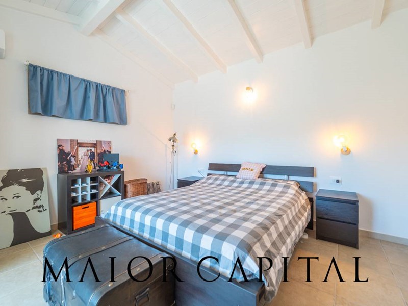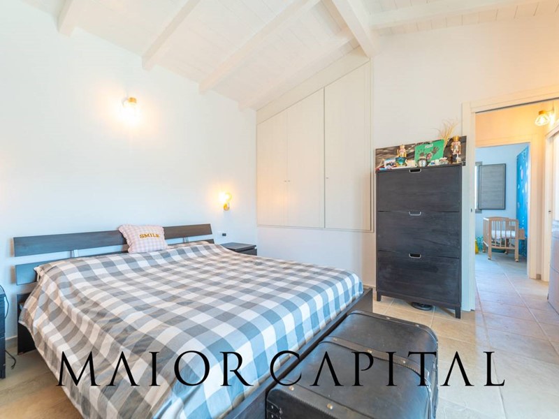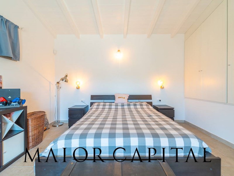 Salendo al primo piano troviamo una seconda camera matrimoniale, impreziosita da un soffitto con travi a vista in legno bianco, che dona luminosità, calore e un tocco distintivo di stile mediterraneo. Questa stanza dispone inoltre di accesso diretto a una veranda coperta, perfetta per momenti di quiete allaperto.
