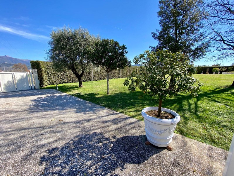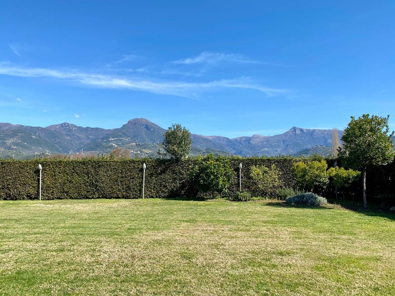 Giardino con splendida vista sulle colline della versilia che ricordano i dipinti dei paesaggi toscani, bel contesto residenziale e con molta privacy.