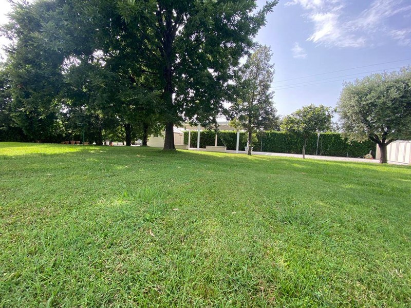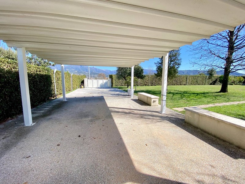 La proprietà è dotata in oltre di impianto di allarme, aria condizionata e nel giardino di un comodo accesso carrabile per il parcheggio sotto un porticato per più posti auto.