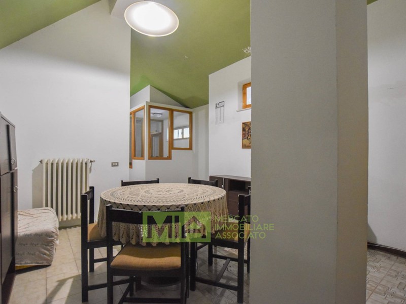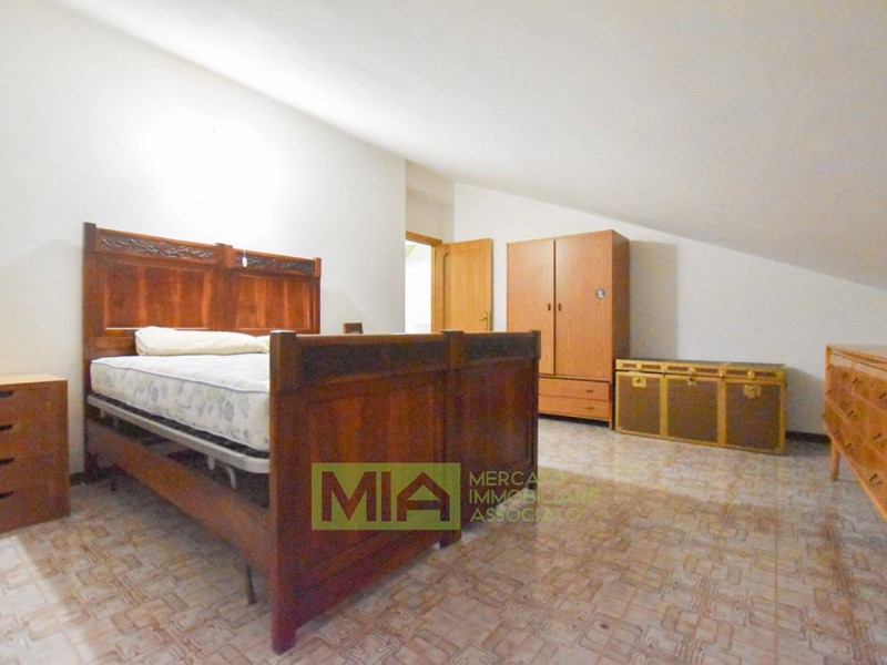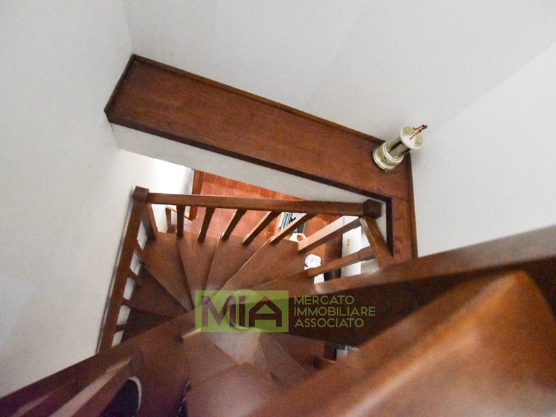 Una scala a chiocciola in legno conduce al piano mansardato, dove si apre un ulteriore spazio abitativo composto da due camere matrimoniali, un secondo salone e un bagno. Questo piano può essere vissuto come estensione della zona giorno oppure trasformato in ununità indipendente, ideale per ospiti, figli adulti o soluzioni abitative autonome.