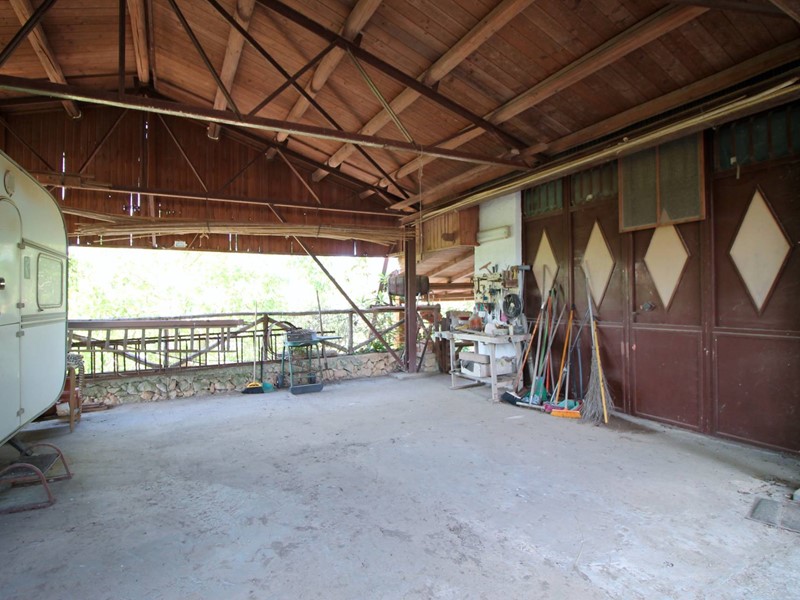 Completano la proprietà il garage, la tettoia, la legnaia, il classico vano attrezzi e il vano con forno.