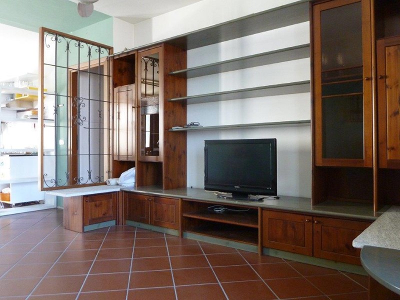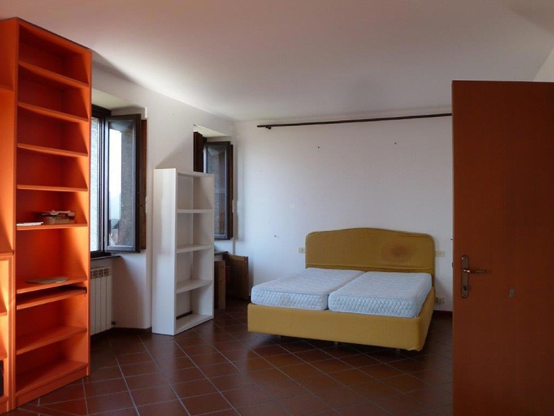 A pianta perfettamente rettangolare con triplice affaccio comprende soggiorno con cucina di quasi 50 mq., unica camera di circa 30 mq., ricavata dall'unione delle due preesistenti (ripristinabili), doppi servizi e cameretta o studiolo.