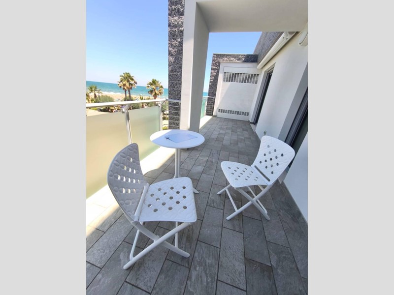Rif-158t A Silvi Marina, all'interno del complesso de 'Le dune, prestigioso residence con accesso diretto alla spiaggia, nella palazzina a ridosso del mare, l'agenzia Silvire vende un appartamento di recente costruzione che sviluppa circa 85 mq ed è così composto: un ingresso, un'ampia zona giorno finemente arredata con accesso ad una terrazza con vista direttamente sulla piscina e sulla spiaggia e con tendaggi automatizzati; attraverso un comodo disimpegno si raggiunge la zona notte dove sono presenti una camera matrimoniale, una cameretta e un bagno. Un comodo ripostiglio è presente all'esterno dell'abitazione. L'immobile, che viene venduto completamente ammobiliato come da foto, presenta finiture di pregio con serrande elettriche, impianto elettrico di ultima generazione, impianto di aria condizionata in ogni stanza. Nel residence, oltre a spazi verdi è presente una piscina fruibile durante il periodo estivo; a completare la proprietà un posto auto coperto.